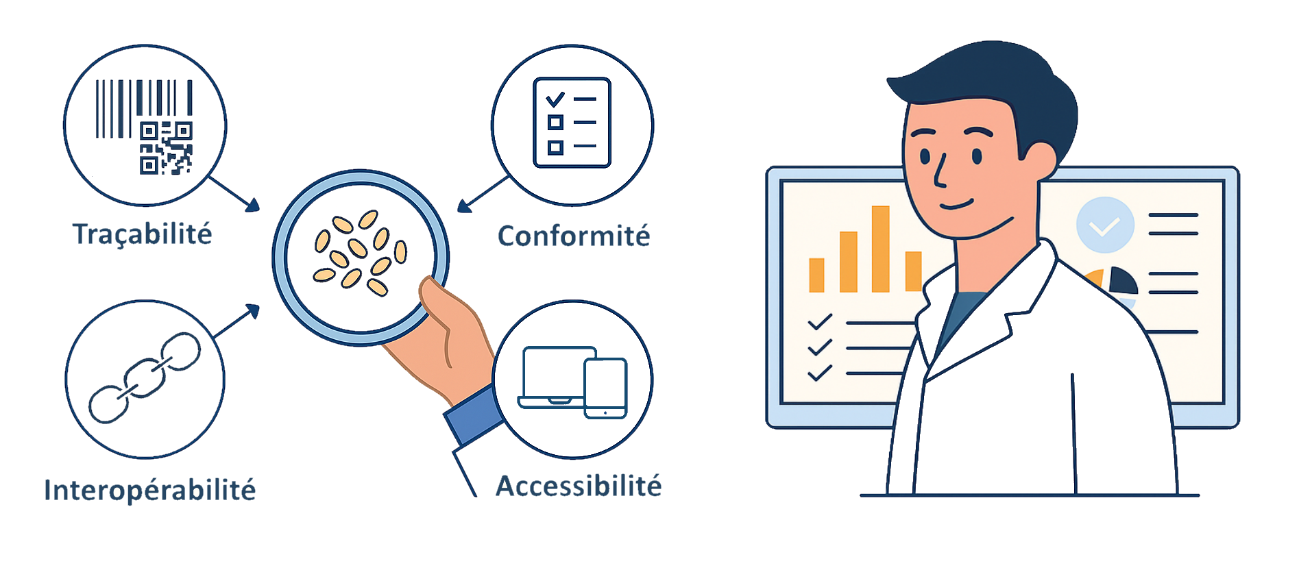 Ces tableaux de bord standards ont été conçus principalement pour des acteurs de l'industrie de la semence : donneurs d'ordres, coopératives agricoles, stations de semences. Leur objectif est de répondre rapidement à la plupart des questions qui se posent fréquemment au fil de la transformation des semences, de la réception initiale des récoltes jusqu'à la livraison des sacs contenant les produits finis :